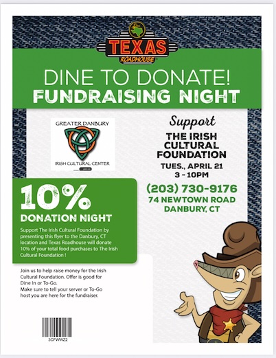 Say you’re part of the Irish Club and Texas Roadhouse will donate 10% of proceeds to the GDICF